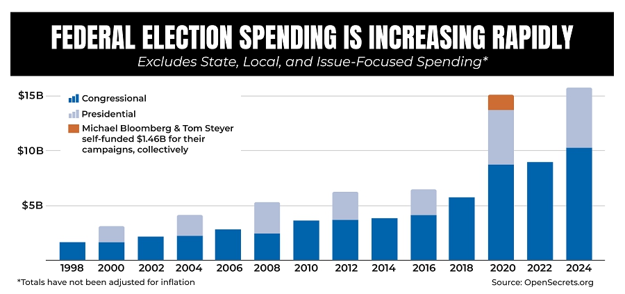 The foregoing figures represent only federal political spending in the U.S. and exclude spending by campaigns for public offices at the state, county, city, or district level. Besides races for office, political organizations have increased their spending to influence public opinion. According to OpenSecrets, in 2022, more than $1 billion was spent to support or oppose state-level ballot measures placed directly before voters, with 27 different ballot measures generating at least $5 million each in spending. Additionally, outside spending in connection with races for office has increased with the proliferation of super PACs and other issue-oriented organizations. Any organization that wants to connect with voters where such communication relates to an election or political issue represents a potential client for our services.